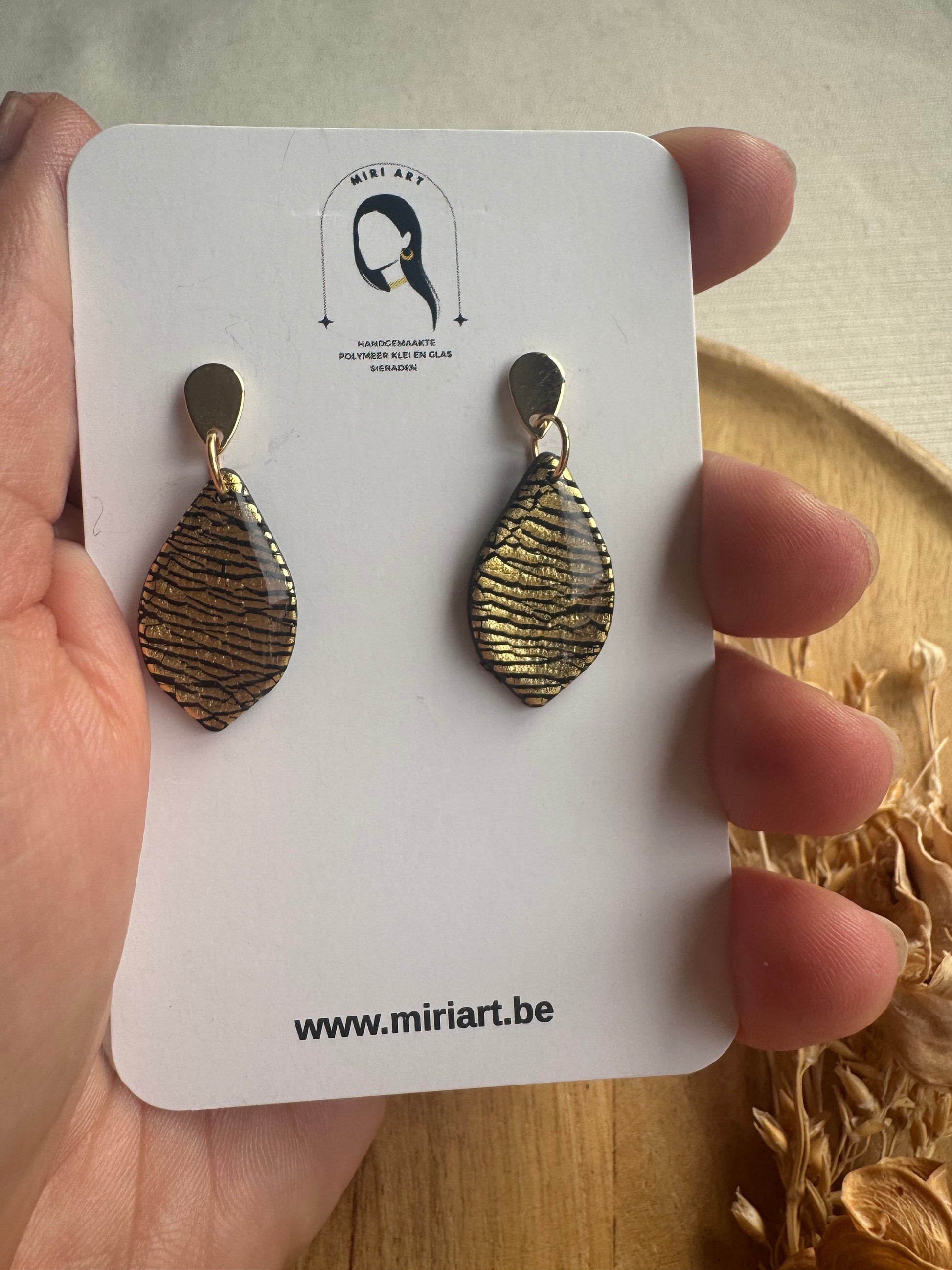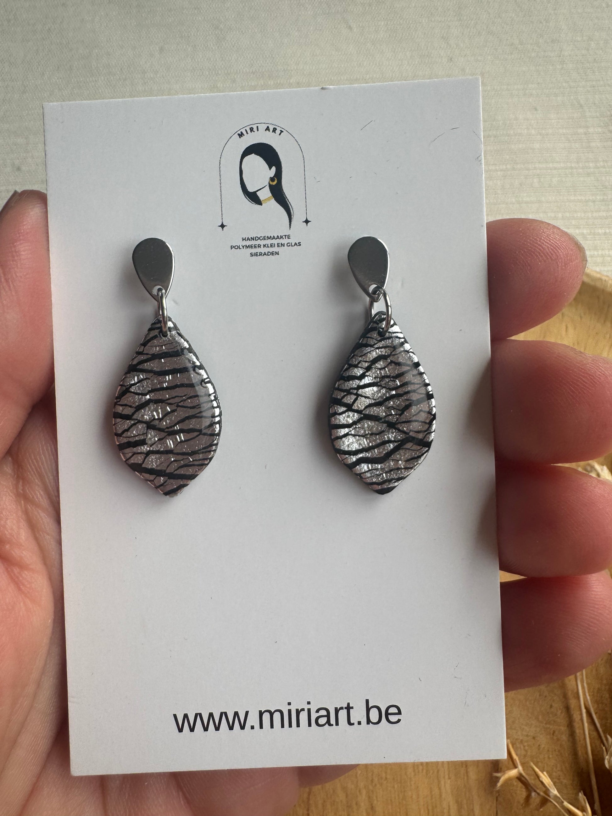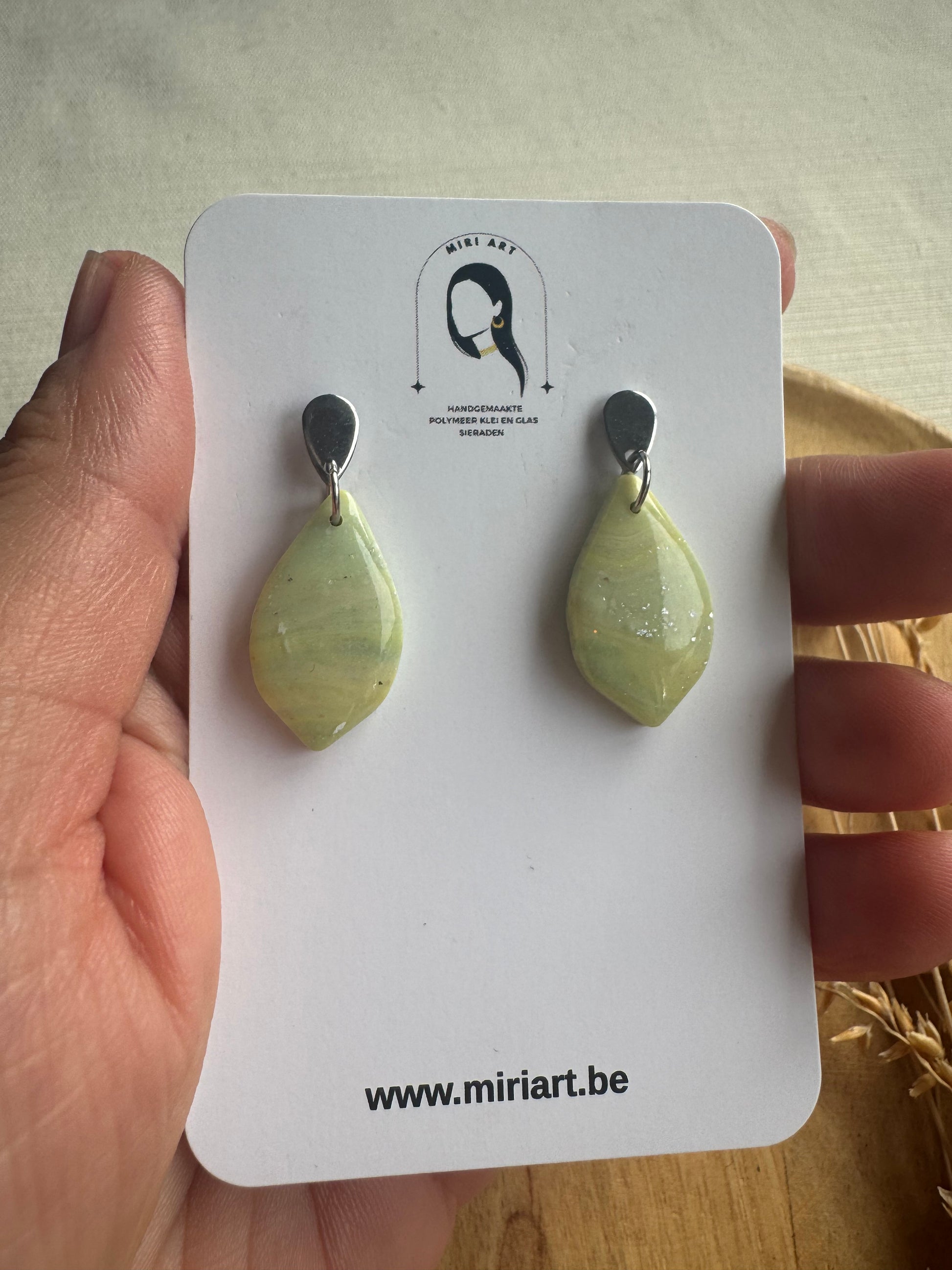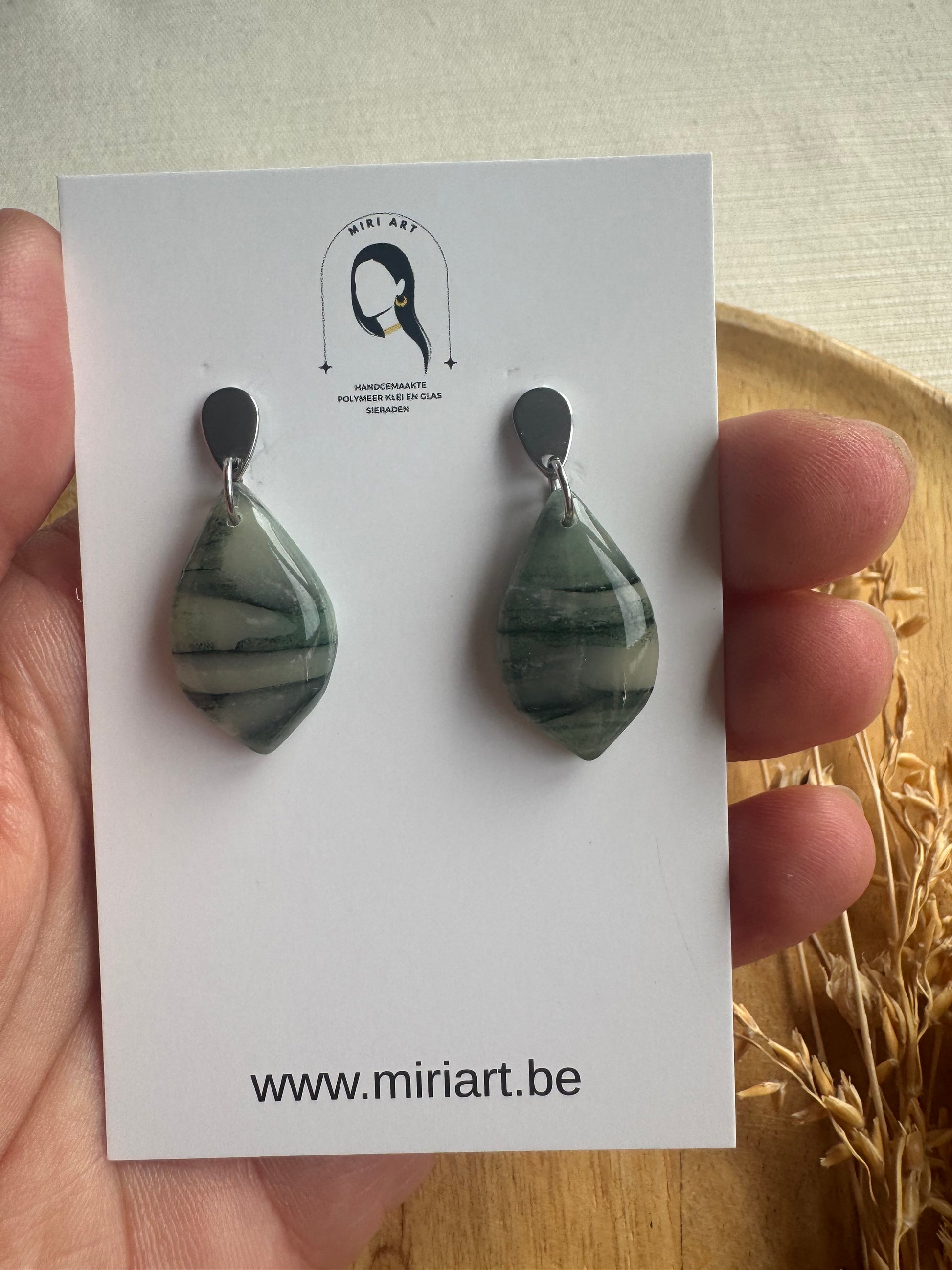 De oorbellen zijn met veel liefde van polymeer klei door mezelf gemaakt , ze zijn erg licht en zeer comfortabel om te dragen. Eerst wordt de klei gemengd, de gewenste vorm gesneden /geboetseerd en indien nodig verwerkt met een patroon. Vervolgens gaan de stukken klei de oven in, daarna wordt het geschuurd en gepolijst . Nadien krijgen ze een vernislaag of worden ze afgewerkt met epoxyhars, geboord en voor u gemonteerd tot de afgewerkte oorbellen. Ik gebruik voor alle oorstukken enkel anti allergisch roestvrijstaal, soms worden gebruikt ook hangers van nikkel vrije messing. Elke paar oorbellen wordt geleverd met 2 paren slotjes ( één van roestvrijstaal en de andere van anti allergische silicone )