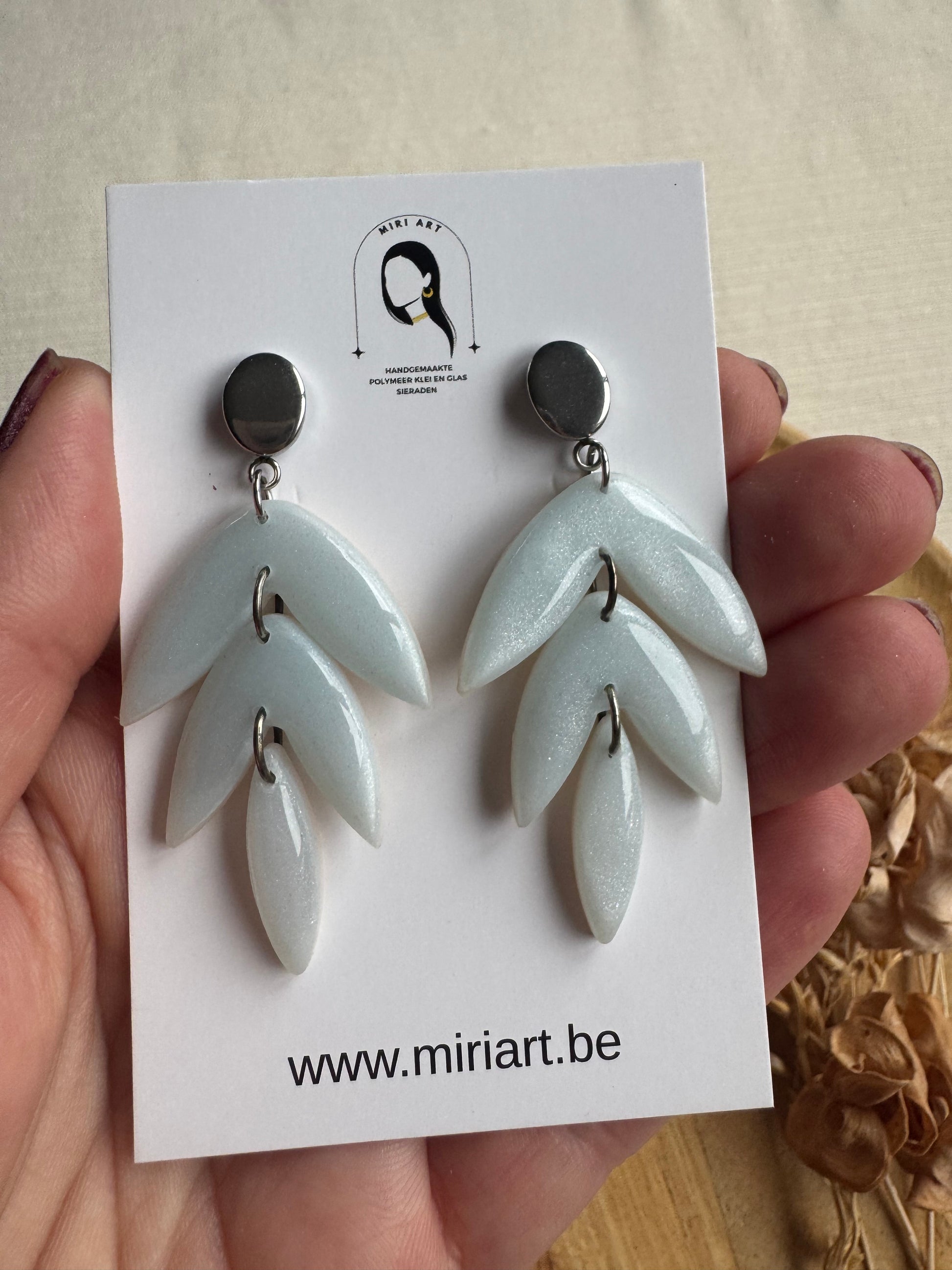 De oorbellen zijn met veel liefde van polymeer klei door mezelf gemaakt , ze zijn erg licht en zeer comfortabel om te dragen. Eerst wordt de klei gemengd, de gewenste vorm gesneden /geboetseerd en indien nodig verwerkt met een patroon. Vervolgens gaan de stukken klei de oven in, daarna wordt het geschuurd en gepolijst . Nadien krijgen ze een vernislaag of worden ze afgewerkt met epoxyhars, geboord en voor u gemonteerd tot de afgewerkte oorbellen. Ik gebruik voor alle oorstukken enkel anti allergisch roestvrijstaal, soms worden gebruikt ook hangers van nikkel vrije messing. Elke paar oorbellen wordt geleverd met 2 paren slotjes ( één van roestvrijstaal en de andere van anti allergische silicone )