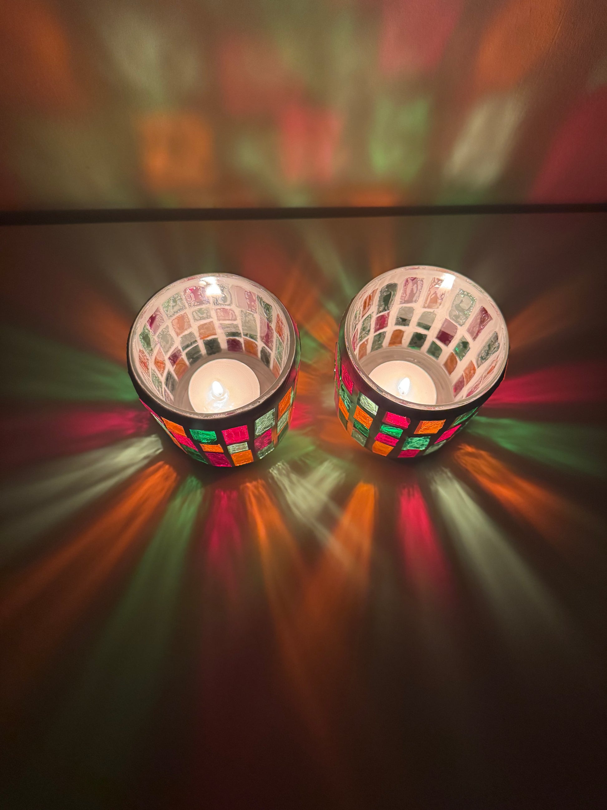 ✨ Handgemaakte glazen mozaïek theelichthouders